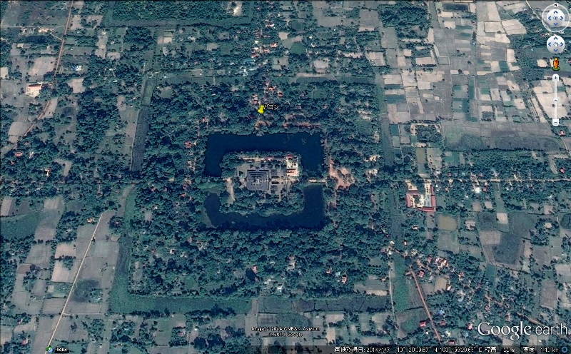 NO2 グーグル アースで 見たバコン 画像の中央に ピラミット寺院の バコンが見られます その四方に環濠が あり 一年中 水をたたえています その外側にも環濠が 見られますが ここは水はありません |