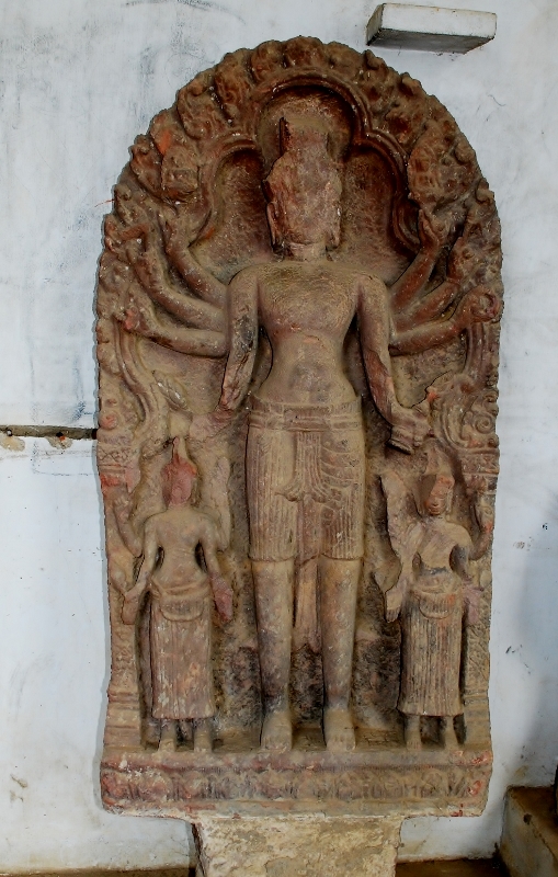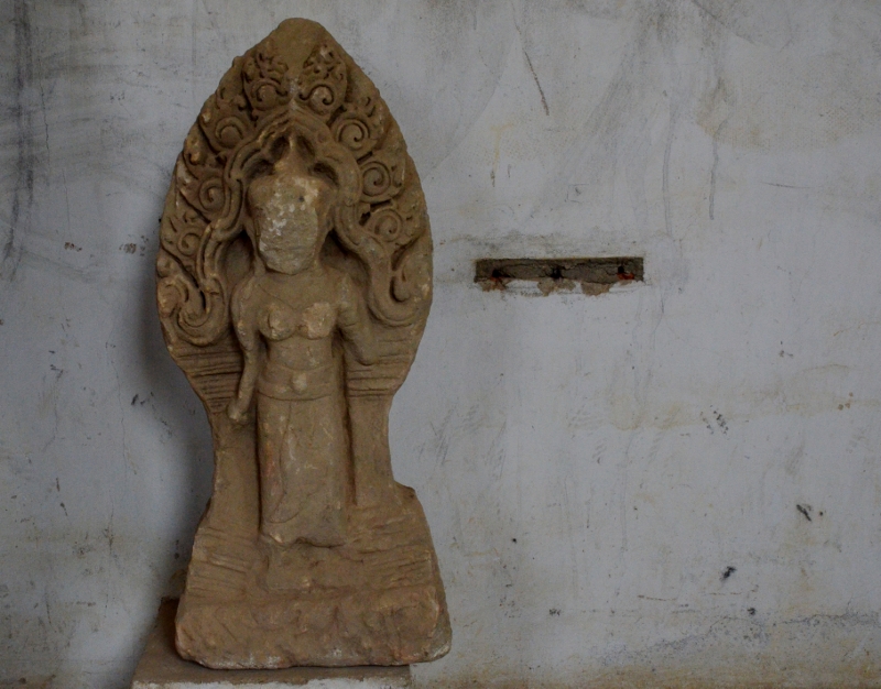 ワット ポウェル 「寺院」 石像 NO1 バッタンバンの町にワット ポウェルと言います大きな寺院があり その一つの建物の中に クメール遺品が保管されています 主なものは石像とリンテルです 多分 バッタンバン州の付近から出土したものを保管しているのでは |