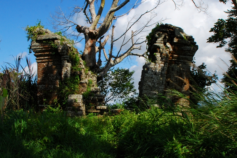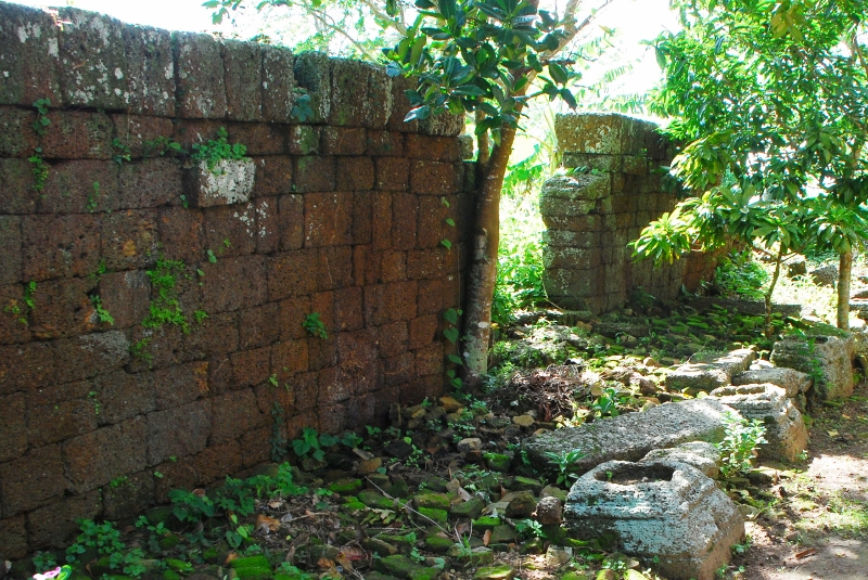 NO4 周壁 崩れた周壁の先に 伺堂が見えます このラテライト 1個 1個を この山頂まで 運ばれたのでしょう |