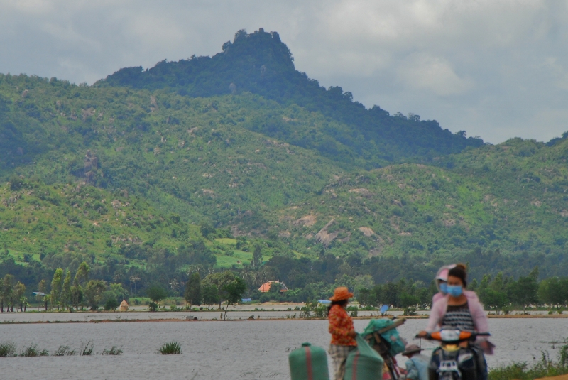 NO2 寺院の近くから 下を見る 水に線状は 2号線で その先のみどりは ベトナムです 山頂から東側を見る |
