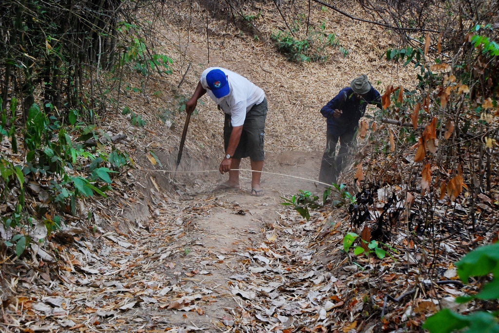 道は牛車サイズ 測量して車が通れるサイズか確認 狭いとき 斧 鍬で道幅を広げる これも旅 |