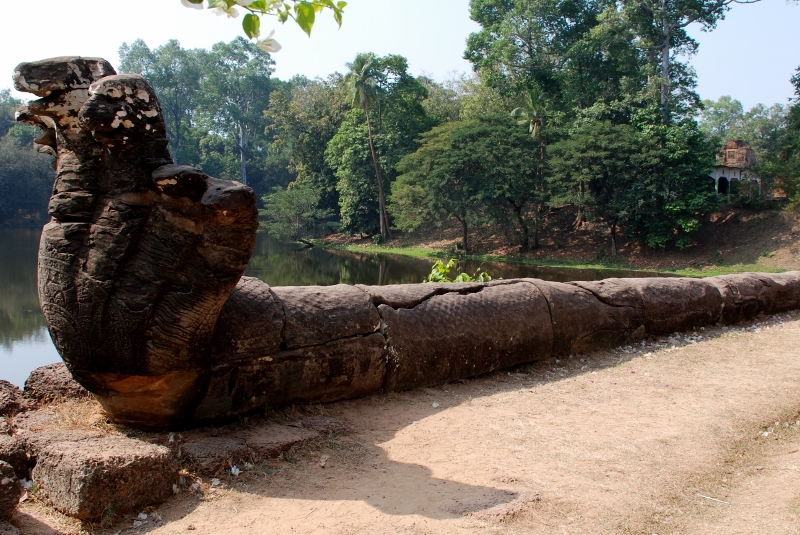 NO1 シエムリアップ州 バコン クメール寺院の参道の 左右に置かれているナーガ クメールにて 参道の左右に ナーガが置かれるのは 10世紀 11せいきの寺院は 少ないが 12世紀 13世紀の寺院は 多くなります |