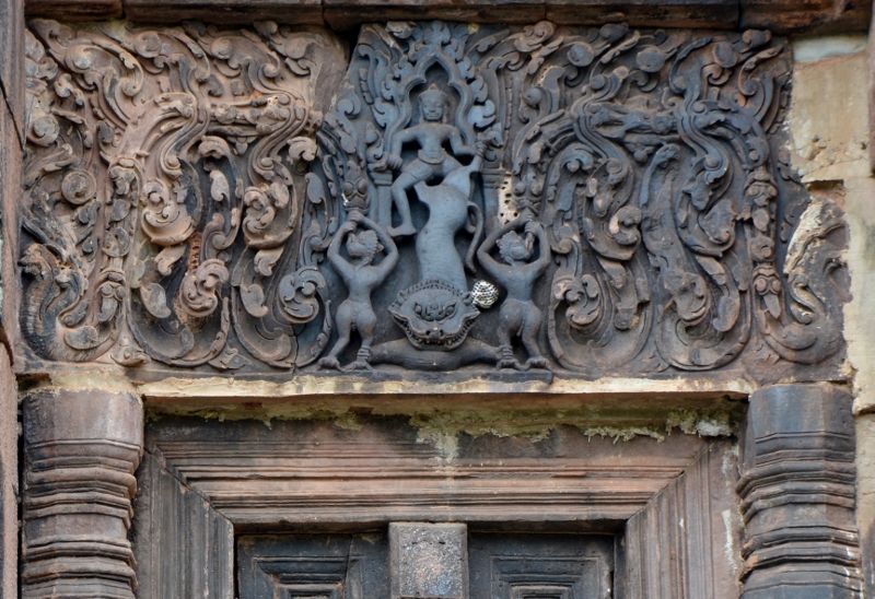 NO4 シエムリアップ州 アンコール ワット遺跡群 トマノンの破風飾り 破風飾りの左右に ナーガが描かれています クメール寺院で この破風飾りにナーガが 描かれるのは 11世紀 12世紀 13世紀の初めの寺院は 真に多い |