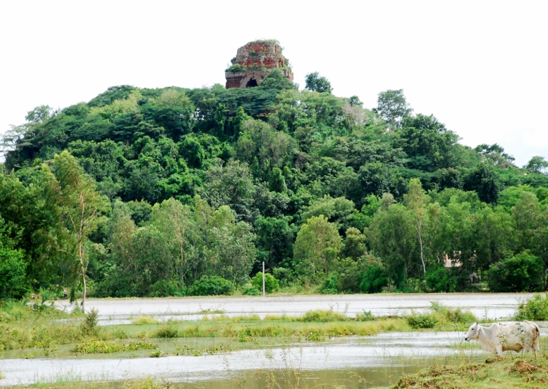 沢の横にラテライトで築かれた寺院が |