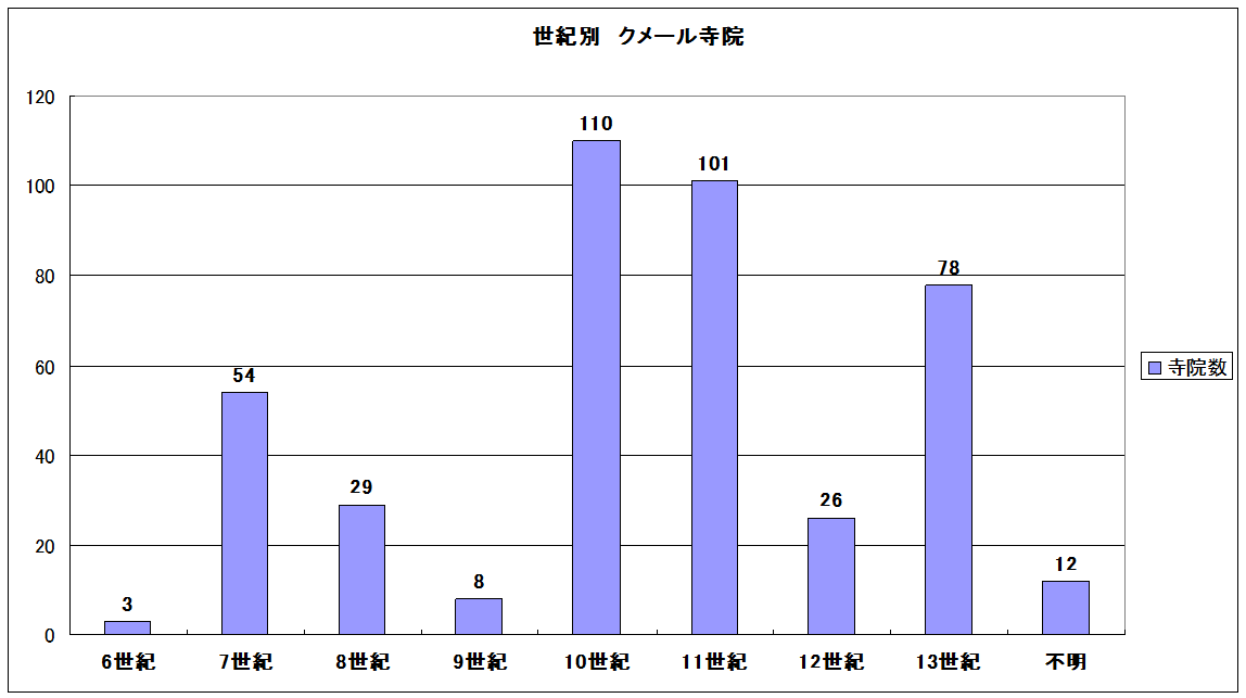 すると 10 11世紀のクメール寺院が多く 州別では 圧倒的にシエムリアップ州が多い