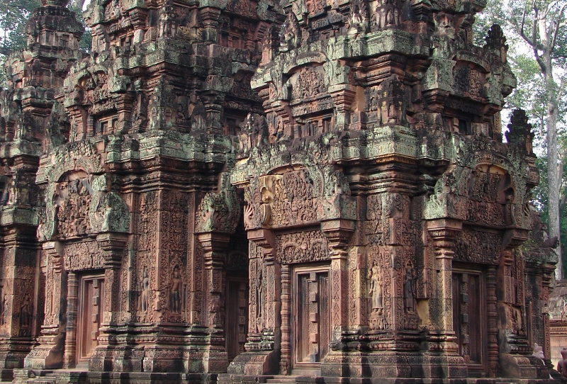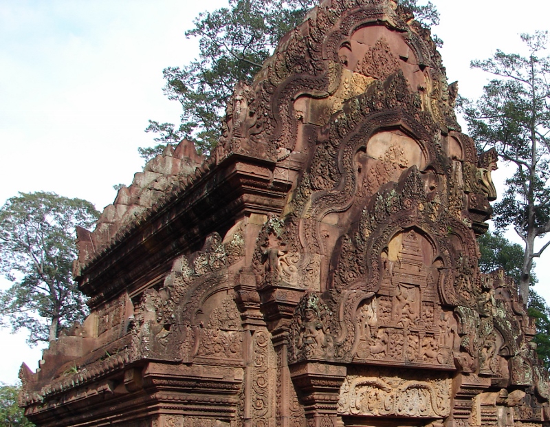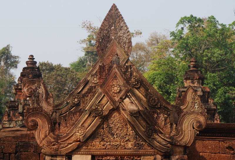 NO5 バンテアイ スレイの破風飾りに ヒンドゥー教の物語が描かれている |