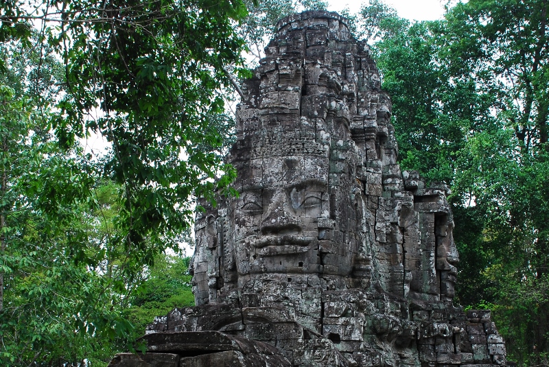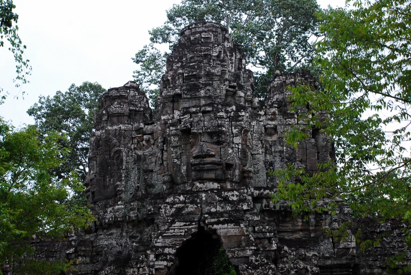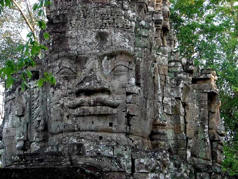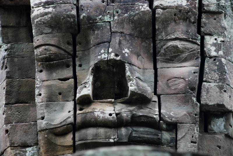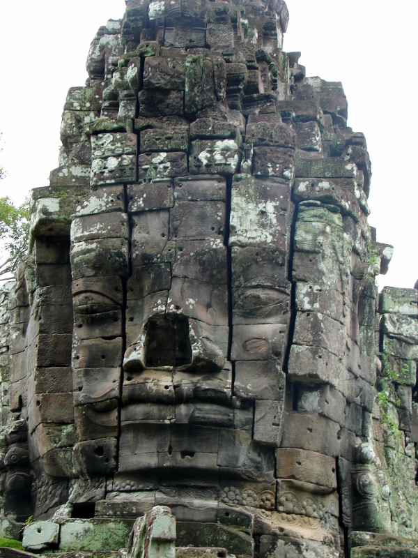 NO2 死者の塔門 お顔に開けられた穴 クメールにては 砂岩 又 ラテライトで 造られたものに 例えばラテライトは 祠堂 周壁 砂岩は デヴァター リンテルなどに なぜ この様な小さな穴を あけたのでしょう 勝利の塔門のお顔にも 多くの穴があけられている |