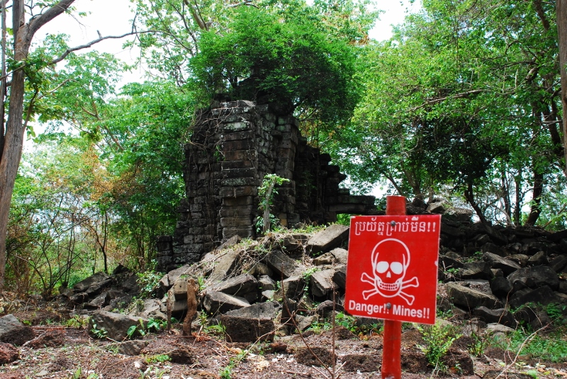 NO6 2010年5月 スラス チュンチム トレイを 訪れると地雷探索が 行われていました 画像前方 環濠 ここ カンボジアです |