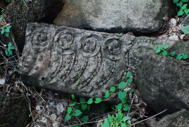 NO3 塔門の地面に バイヨン様式のリンテルが |