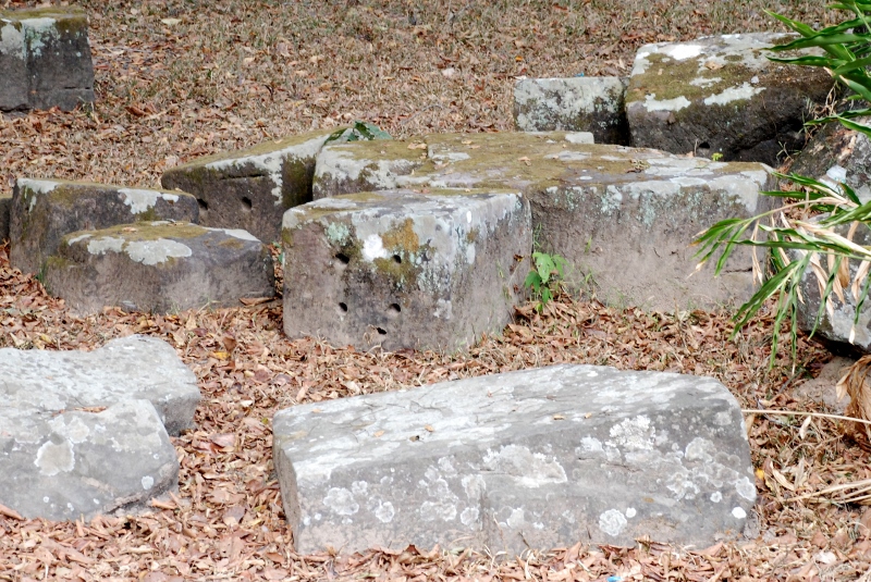 NO6 タイ国 サコン ナコーン県 Prasat Phra That Phu Phek 寺院から5Mほど離れた所に 置かれた砂岩 穴があけられているものがある NO1 未完成寺院なので この砂岩が寺院に 積み上げられる前の砂岩か? ならば 穴は建物の積み上げられる 前にあけられている |