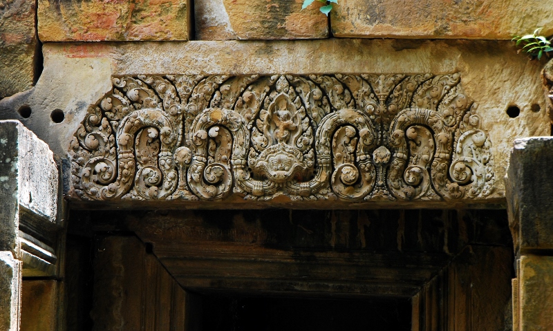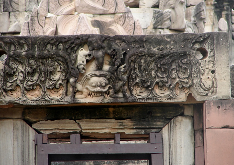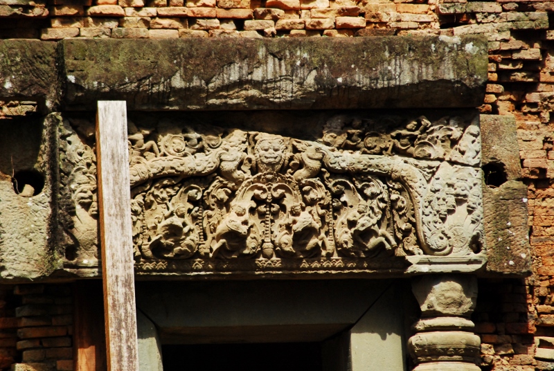 NO3 シムリアップ州 プレア コー 9世紀 リンテルの左右に 貫通穴があけられています |