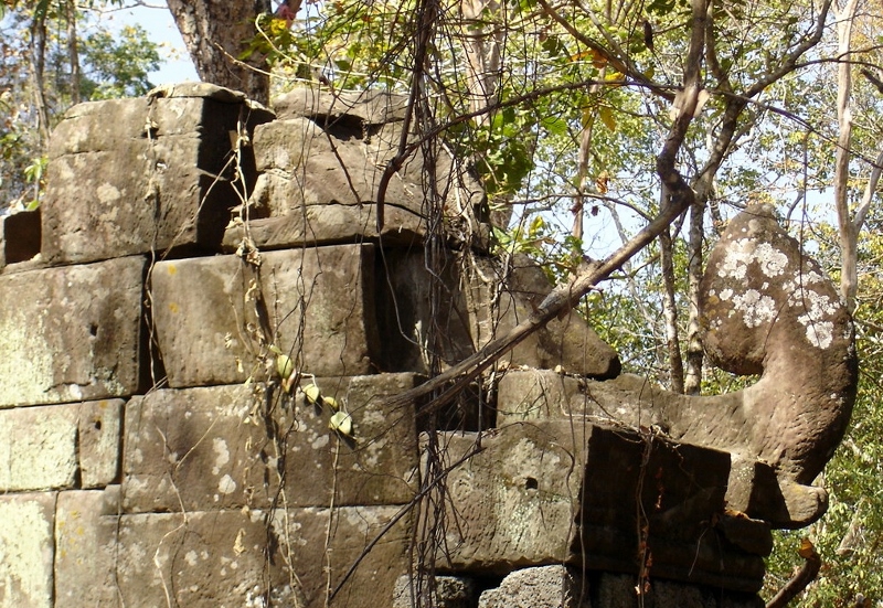 NO4 プリア ヴィヒア州 プラサート カンハット 10世紀 前半 リンテルの左右にあけられた穴 これはリンテルをあげる時 使用したのでは |