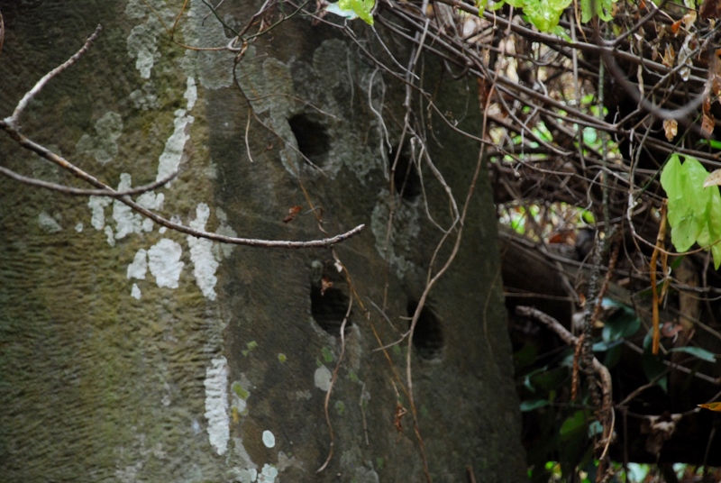 NO2 プリア ヴィヒア州 コーケー遺跡群 プラサート トム 10世紀 前半 ピラミット寺院の 左右の砂岩の表面に 穴があけられています 拡大 穴の深さは 5−7CMほどでは |