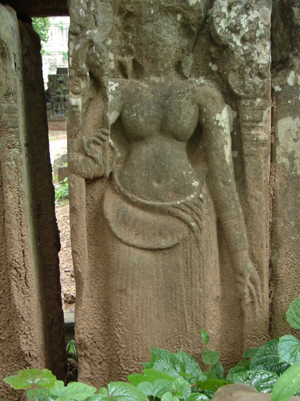 | コーケー遺跡群のプラサート トムには ピラミット寺院 の手前の伺堂に何体かのデヴァターが描かれて いますが この二体を除き状態は良くない |