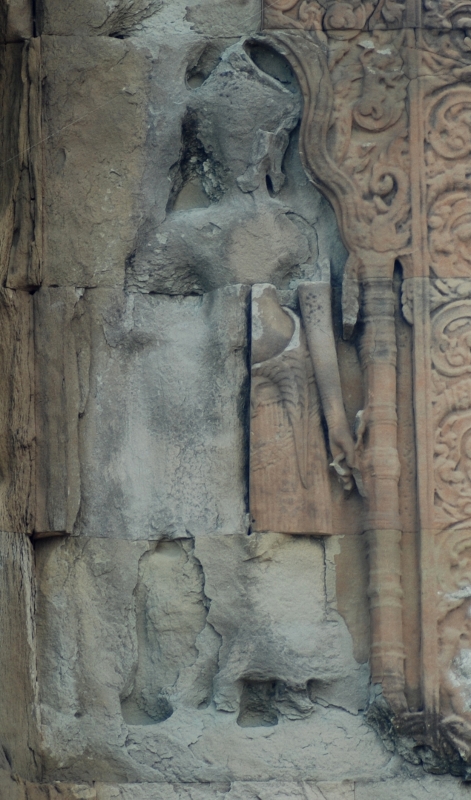 | プノン クロムは三基の砂岩作りの伺堂に描かれていますが 南側 6KM所にトンレサップ湖があり 風をまともに受け 伺堂が風による侵食が激しい寺院です |