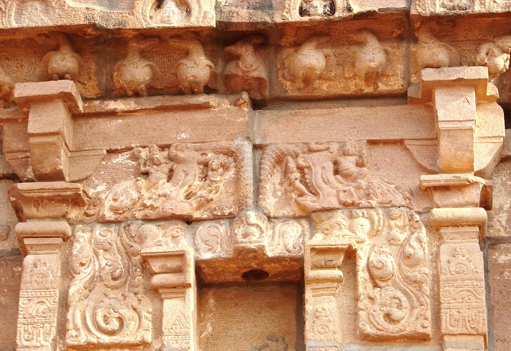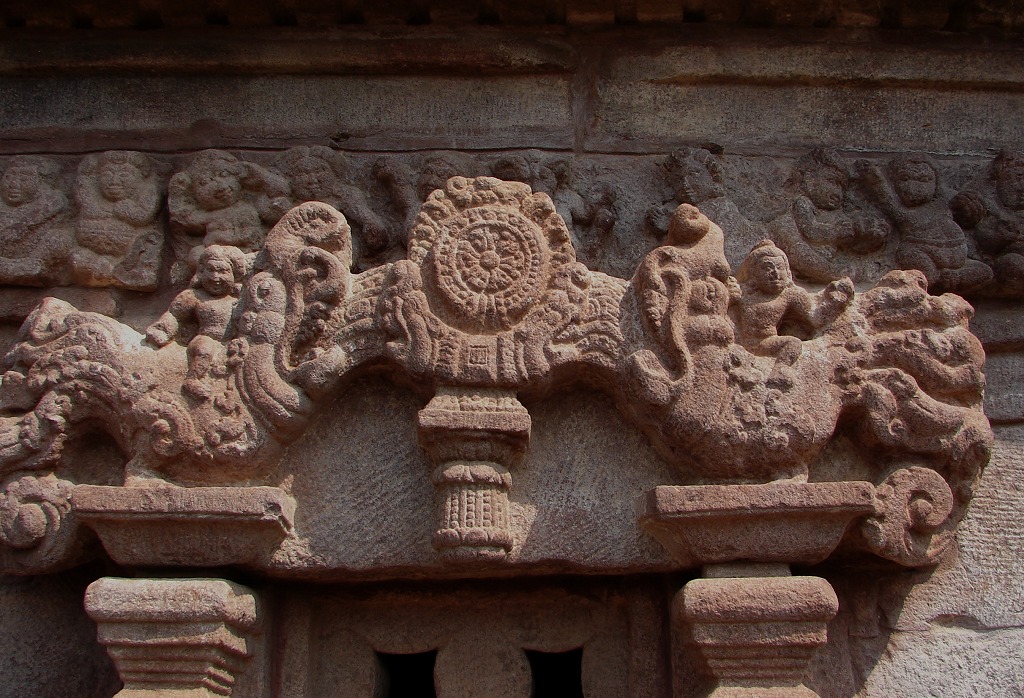 NO4 ルパラサンガメ−シュワラ に描かれた マカラ 上に鳥の連続紋が インドの寺院 |