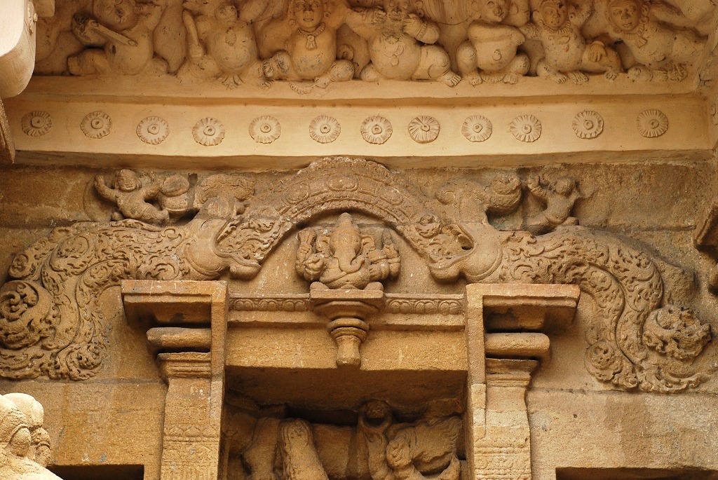 NO2 kanchi kailasanathar temple に描かれて居る マカラ 童子 ベルト このデザインが クメ−ルに伝わる そして サンポ−ルプレイ クック 遺跡の寺院に 描かれて居ます インドの寺院 |