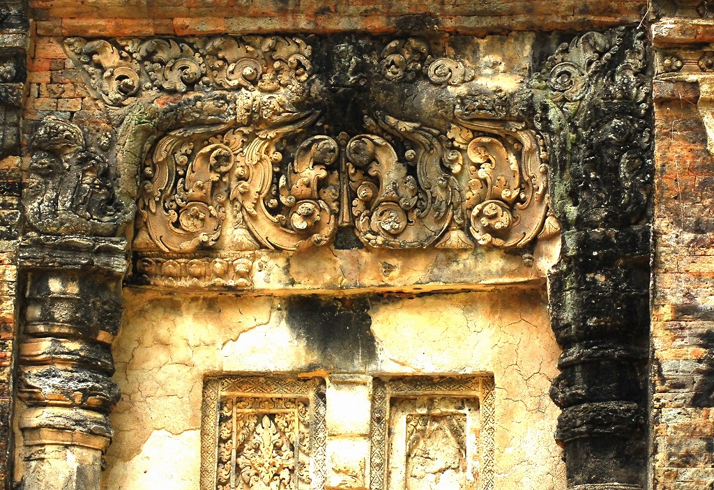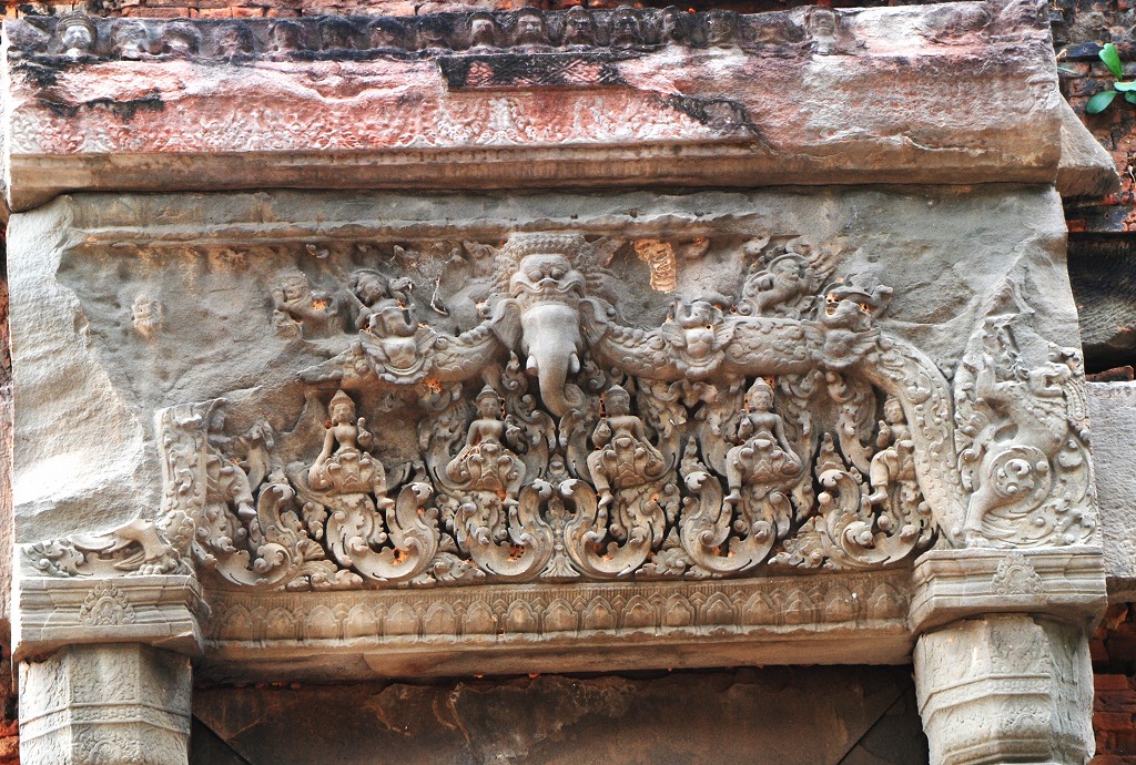 NO3 シェムリアップ州 プレア コ− 両サイドに ナガ−が描かれて居るが その後のリンテルに ナ−ガが 多く描かれる |