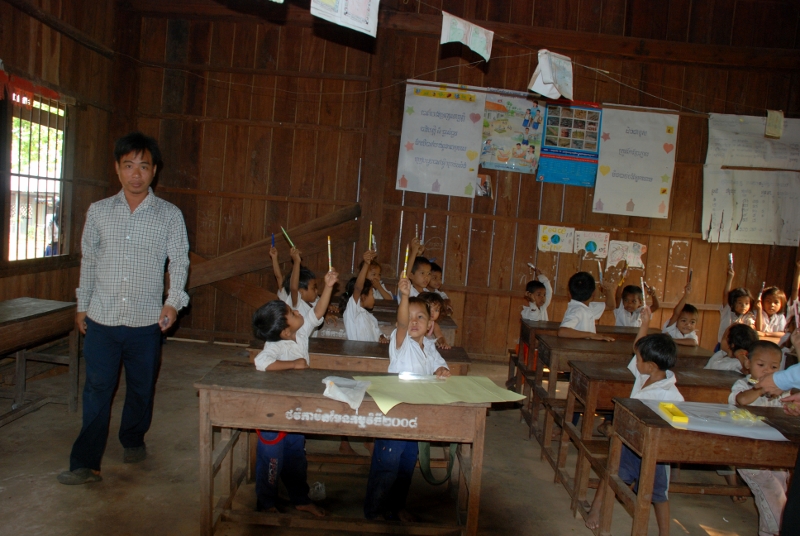 NO1 カンボジアの田舎の 学校には 教科書と ノートが 無いところがあります 写真の様に 板にチヨークで 習う |