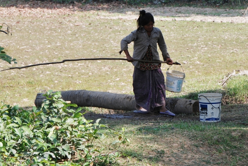 NO4 村のはずれにある 井戸 水をくみ上げ 家まで運ぶ かなりの重労働です |