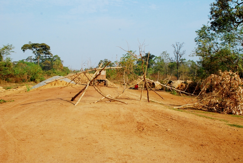 NO1 10Mほど先に新しい橋を 建設中 直進 止め 木が何本か立てられています 迂回路の指示と思うが 勿論 これ以外何も無い 日本ならガードマン 夜 ライトで表示 それぞれに経費がかさむ 多分 中国がこの道 橋の 受注を受けているのでは? |