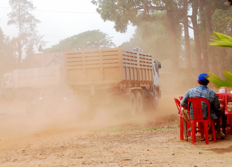 NO3 道路工事の現場近くの 食堂で我々が昼食を 1時間もすると テーブルの上は 砂の層が出来るのでは? |