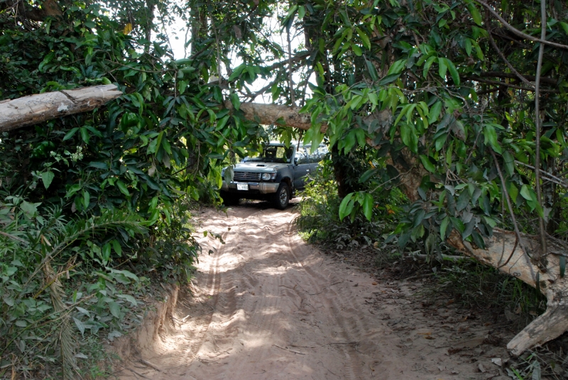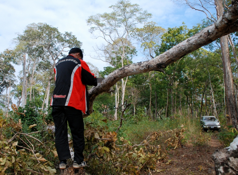 NO1 カンボジアにて 道の障害物は 倒木です 倒木に弱いのは 自動車で オートバイ コブタ 牛車は 横に回避が 出来ることが多い |