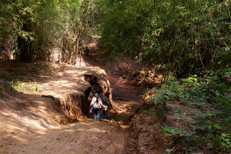 NO3 カンボジアの各地で 見られる光景 河 橋ありません 雨季 特に9月と10月 この写真より 3Mから4M 水が増えて 交通遮断 村によっては 2−3月間孤立します プリア ヴィヒア州のたび 6月から10月までは 困難な所が多くなります |