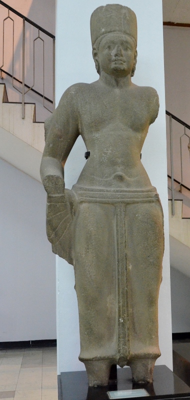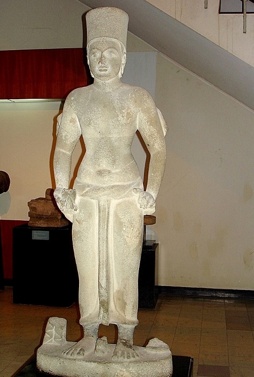 NO1 バンコク博物館 展示 6世紀から8世紀 と記載 このページの 石像は 像の左右に 支え棒があります 僧帽をかぶり サンポットは ほぼ 同じ (タイ 像 NO1) |