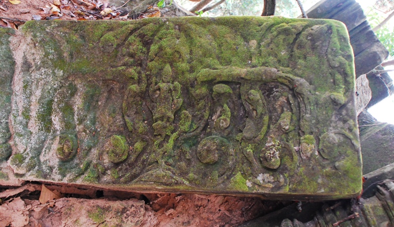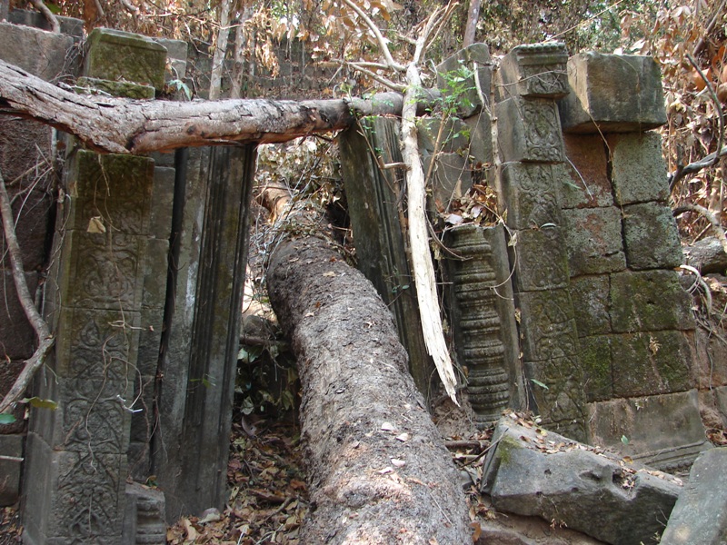NO8 プラサート コン プル リンテル 左側は 崩壊 このリンテルは アンコール ワット 様式の リンテルです |