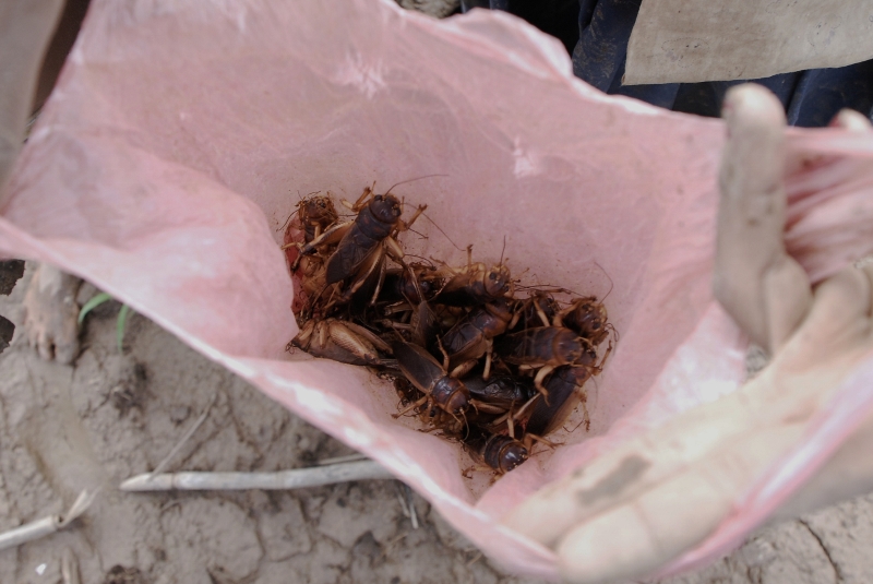 NO5 田んぼで 子供達が 捕まえた虫 即 食べ物に |