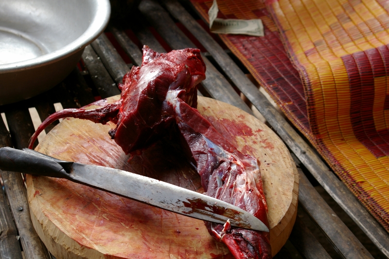 NO2 鹿の肉です まあ 見たとおり 赤身のみ 脂肪分が 少なく美味しくは ありませんが カンボジア 猪が NO1では |