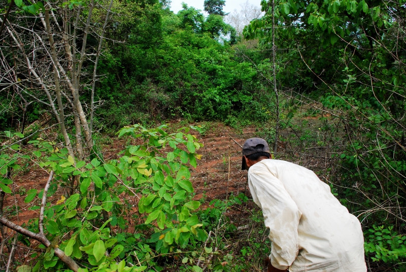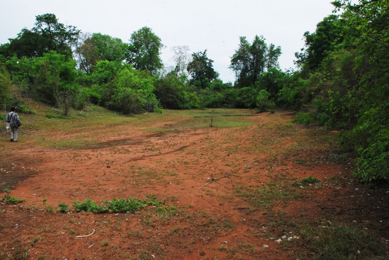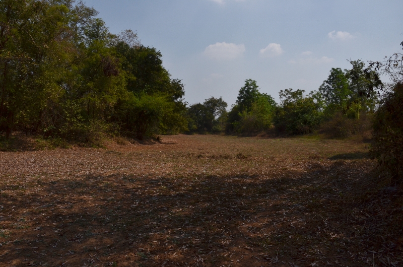 NO1 バンテアイ チュマール のメボンに渡り メボンの藪を少し 進むと 幅30Mほど 長さ メボンの長さほどの 草木の生い茂らない 河のようなものが あります あのグーグル アースで 見えた環状の ものが この河の ようなものです |