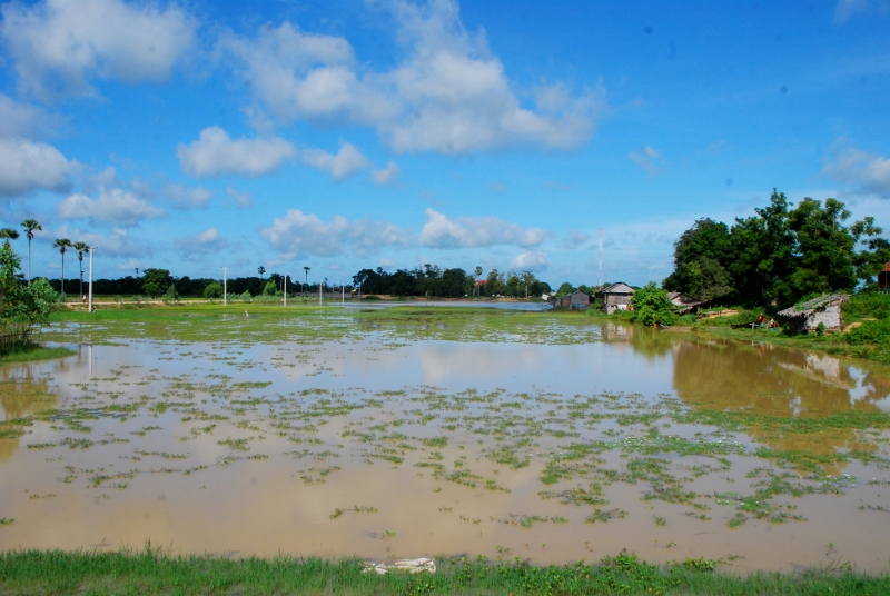 NO3 カンボジア タケオ州 プラサート バライの横にある メコン河が氾濫し 池のように 地元の人も そこには 水田は造らない このプラサート バライは 常に水が多くて悩まされている 土地柄です |