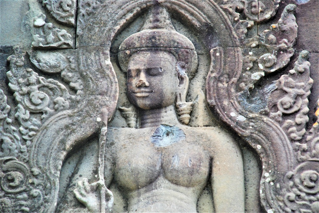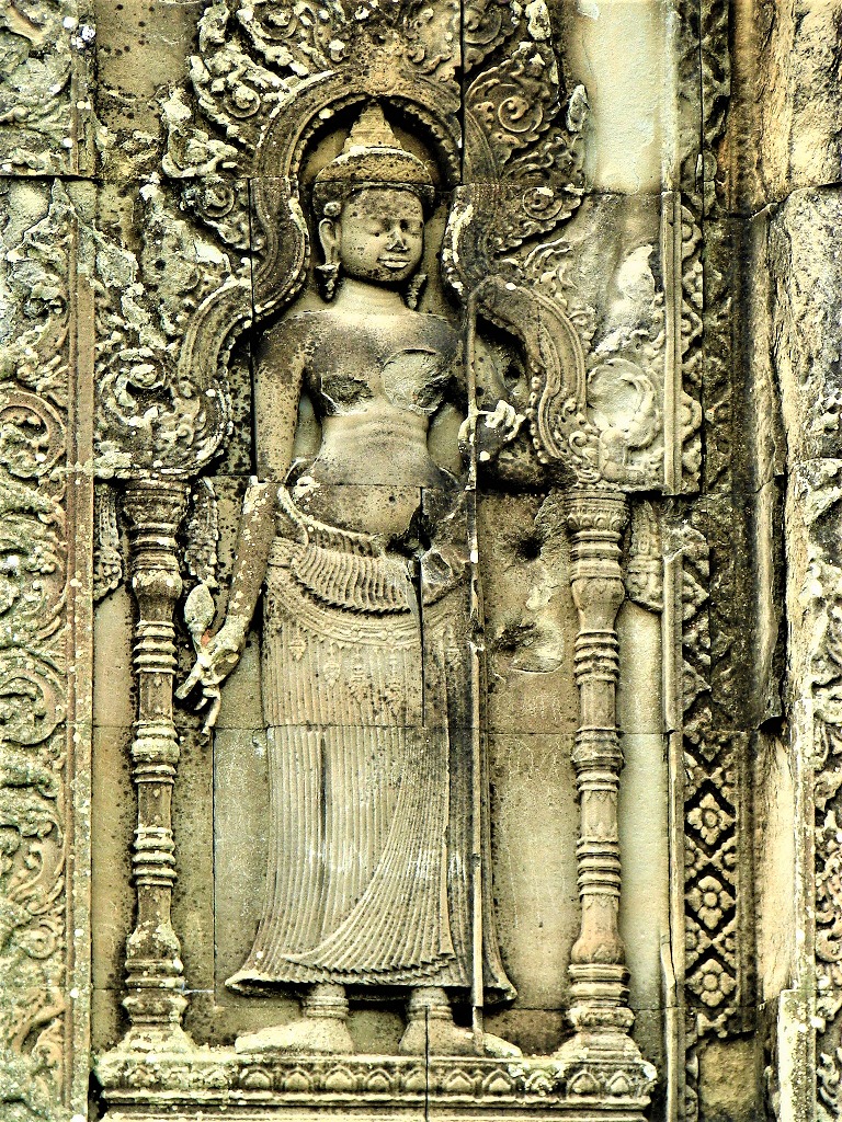 NO12 デヴァター クメールでは このデヴァターも 年代により 違いがあり このデヴァターは 足が開いて 描かれています |