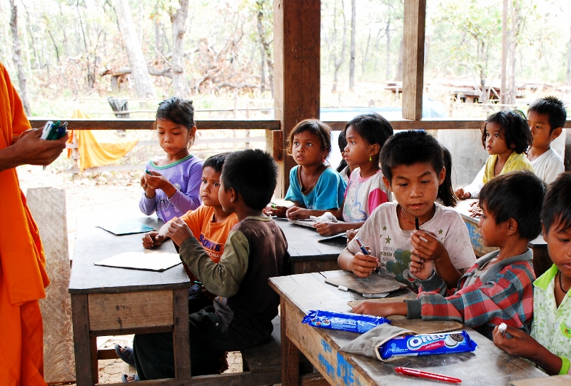 NO1 カンボジアの田舎の 学校には 教科書と ノートが 無いところがあります 写真の様に 板にチヨークで 習う |
