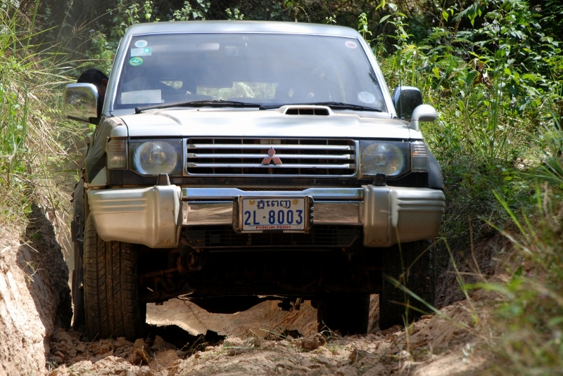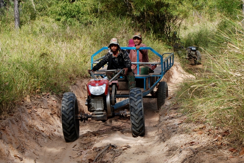 NO6 子豚に乗り クメール寺院を目指す ここ人は歩いては 行けません 草が足に絡みつき 前進は困難では この草が山火事で焼ければ オートバイか この子豚では 進めますが そんな先に レンガ作りの三基の 寺院があり笠石から 10世紀の寺院と思いましたが 人が住んでいない 又 道も無いところに なぜ クメール寺院があるので しょうか? |