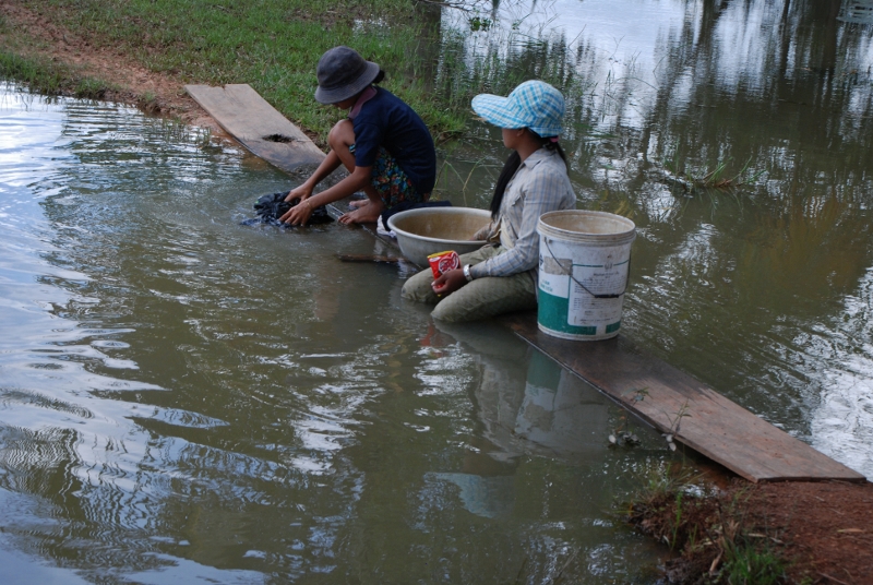 NO2 カンボジアの 子供達は 水汲み 牛の世話 子供の世話 薪取り そして 洗濯まで |