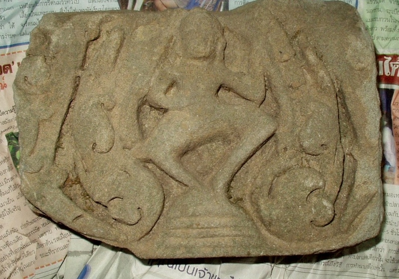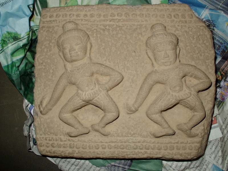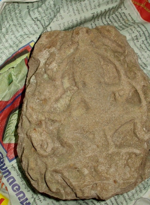 NO2 ある日 アランヤ プラテートの店で 親父さんと会話中 他のおじさんが 家にもあると 誘いの話が 市場から少し離れた家に オートバイで 新聞紙をほどすと リンテルの一部では? |