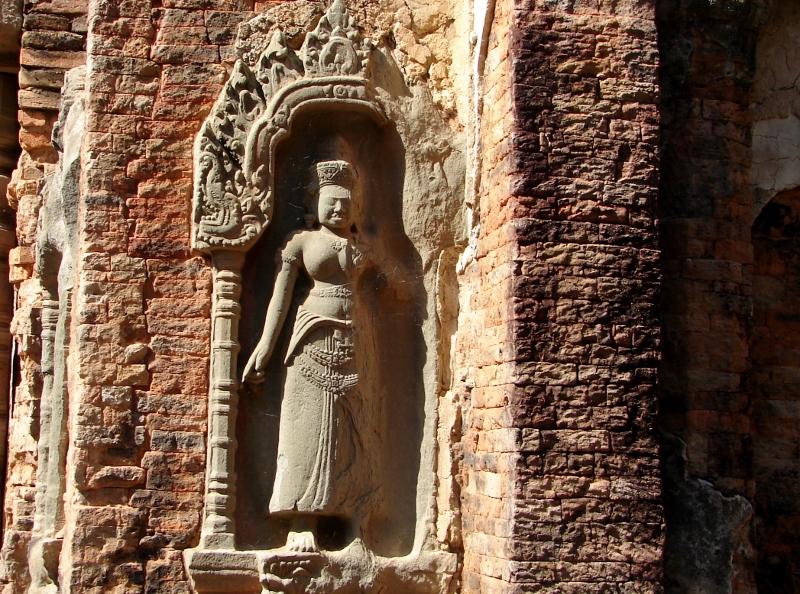 NO1 シエムリアップ州 プレア コー 「プレア コー様式 9世紀」 デヴァターの右側の 建物上部から水が 流れ落ち デヴァターの 右側に大きくダメージを 与えました |