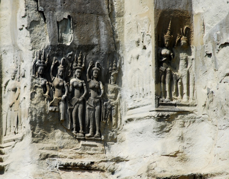 NO5 アンコールワット遺跡群 トマノン 「アンコールワット様式 12世紀」 画像手前は ドヴァラパーラ像は雨を受け それなりのダメージが 後部のデヴァターは 雨を受けず 状態がよい |