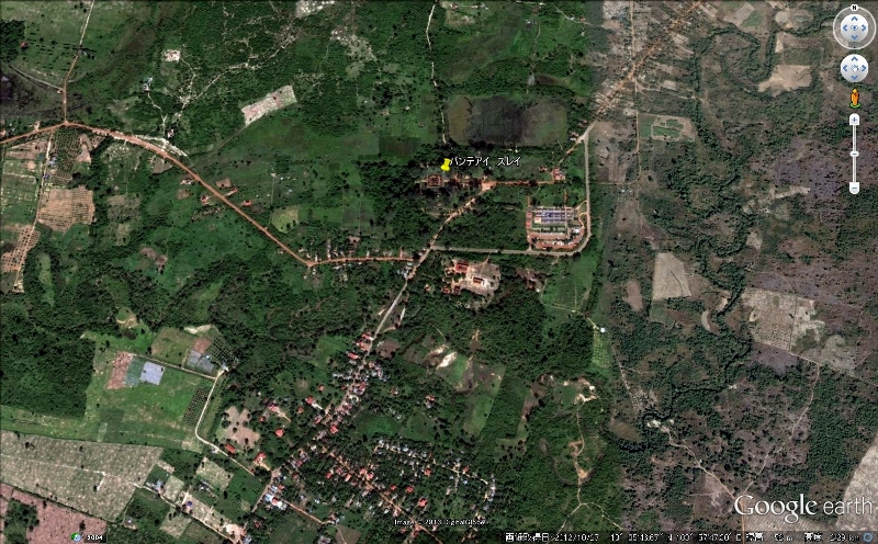 NO5 シエムリアップ河の上流 画像の中央に バンテアイ スレイがあり シエムリアップ河は スレイの右と下の緑色の 蛇行している所が シエムリアップ河です 高度 2.300M 写す |