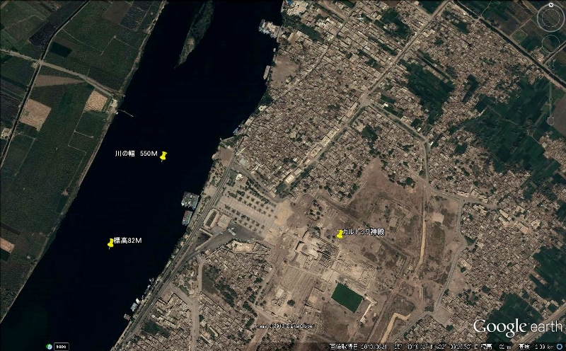 NO4 カルナック付近の ナイル川 川幅 550M 岸に船も見えますが シエムリアップ河 クレーン山麓から アンコール ワット遺跡群 付近まで 船は 1隻も有りません 高度 2.300M 写す |
